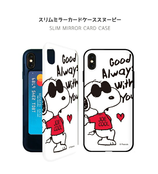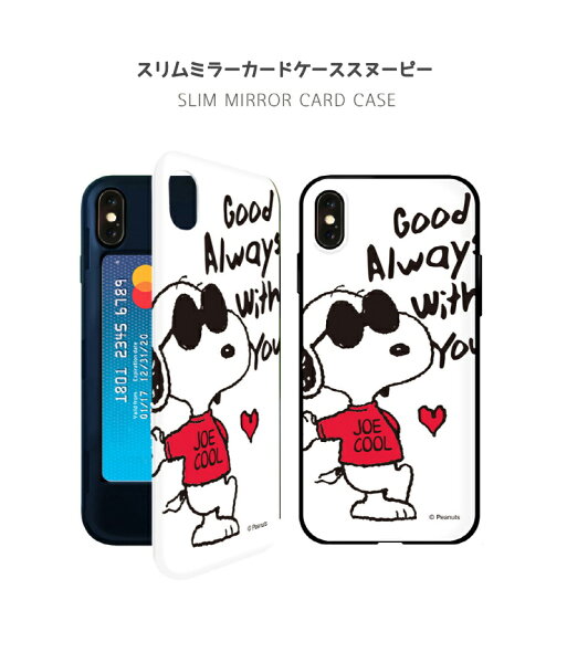 Snoopy Slim Mirror Card Case【DM便送料無料】PEANUTS ピーナッツ スヌーピー iPhoneケース スマホケース 正規品 スマホカバー 携帯カバー ミラー付き 可愛い TPU 保護 カード収納 アイフォン アイフォンケース 鏡 収納ケース 便利 キャラクター TPU 保護 落下防止 耐衝撃