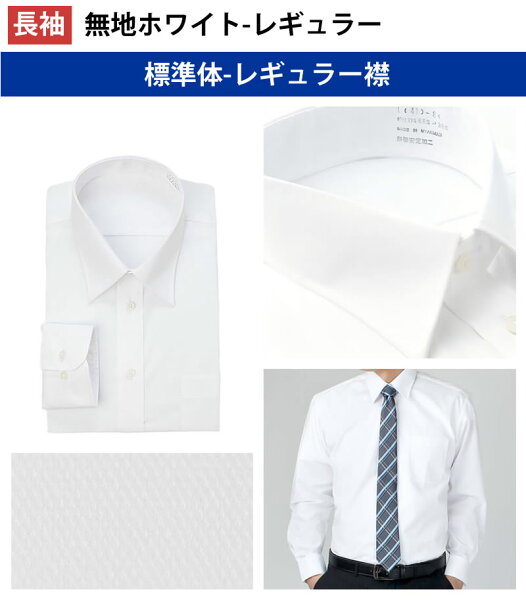 - 長袖-無地白-レギュラー衿-標準体a