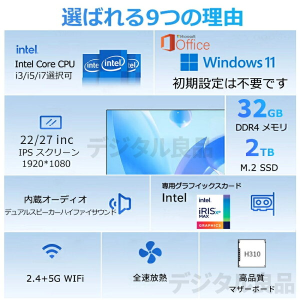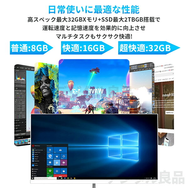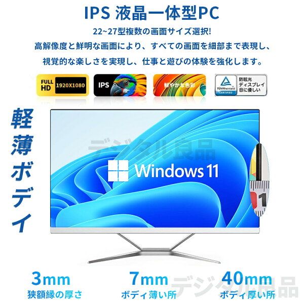【期間限定!全品10%OFF】 新品 デスクトップパソコン 一体型PC 22/27型 フルHD液晶 一体型パソコン CPUインテル Windows 11搭載 第13世代Core i3 i5 i7 i9 メモリ 16GB 32GB SSD 128GB 512GB 1TB WiFi搭載 Bluetooth 初期設定済み キーボードとマウス付属 ビジネスオフィス