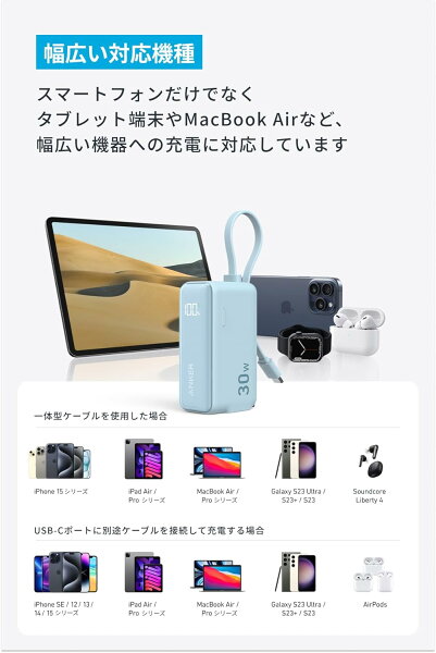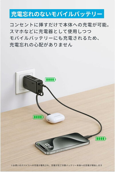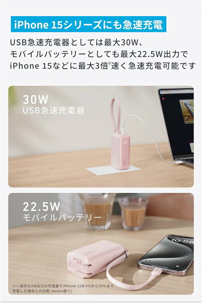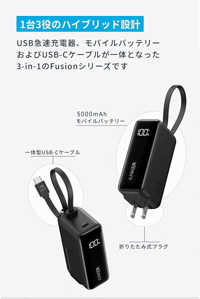 【1/5 限定 P15倍】Anker Power Bank (30W, Fusion, Built-In USB-C ケーブル ライトニングケーブル) (5000mAh 22.5W出力モバイルバッテリー搭載 30W出力USB充電器) / LEDディスプレイ搭載/USB-Cケーブル一体型/コンセント一体型