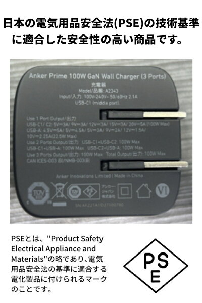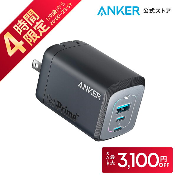 【開始4時間限定!クーポン利用で最大3,100円OFF】Anker Prime Wall Charger (100W, 3 ports, GaN) USB PD 充電器 USB-A & USB-C 3ポート)【独自技術Anker GaNPrime採用 / PowerIQ 4.0 搭載/ PSE技術基準適合 / 折りたたみ式プラグ】