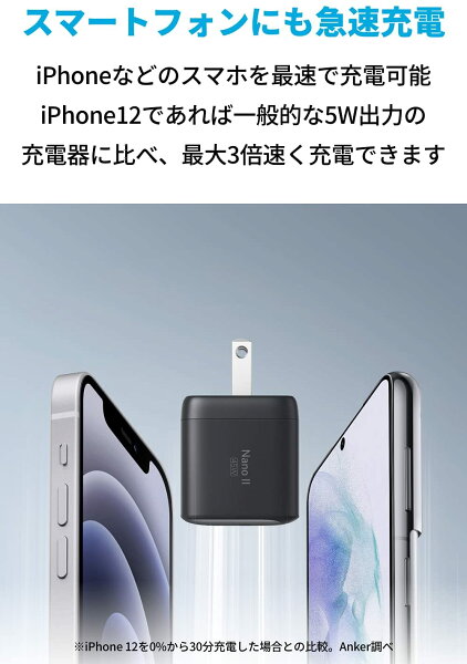 【期間限定セール実施中 12/26まで】スマホ ノートパソコン対応 超コンパクト急速充電器 Anker Nano II 45W (PD 充電器 USB-C) 【GaN (窒化ガリウム) II 採用/PPS規格対応/PD対応/PSE技術基準適合/折りたたみ式プラグ】
