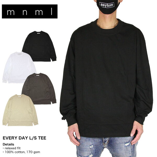 【51%OFF】【MAX80%OFF 年越&初売りSALE!!最大5000円OFFクーポン配布中】mnml ロンT ミニマル Tシャツ 長袖Tシャツ メンズ レディース ブランド 大きいサイズ おしゃれ おすすめ 人気 黒 白 綿100% コットン EVERY DAY L/S TEE 21ML-AW732L ブラック ホワイト M L XL XXL