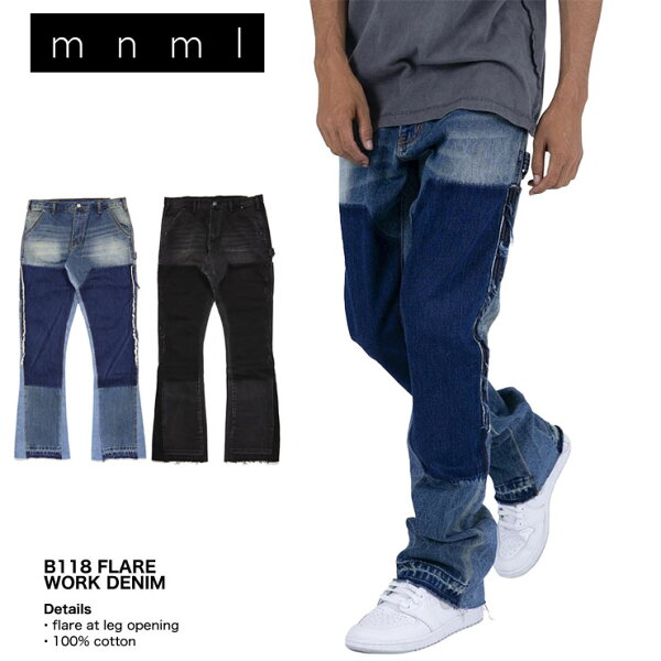 【39%OFF】【MAX80%OFF 年越&初売りSALE!!最大5000円OFFクーポン配布中】mnml フレアパンツ ミニマル フレアデニム デニムパンツ ワークパンツ Gパン ジーンズ メンズ ブランド 大きいサイズ おしゃれ おすすめ 黒 B118 FLARE WORK DENIM ブラック 28 29 30 32 34 36 38