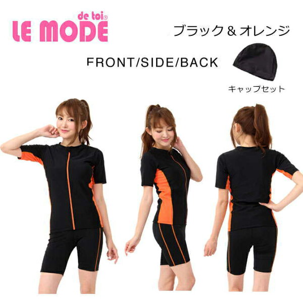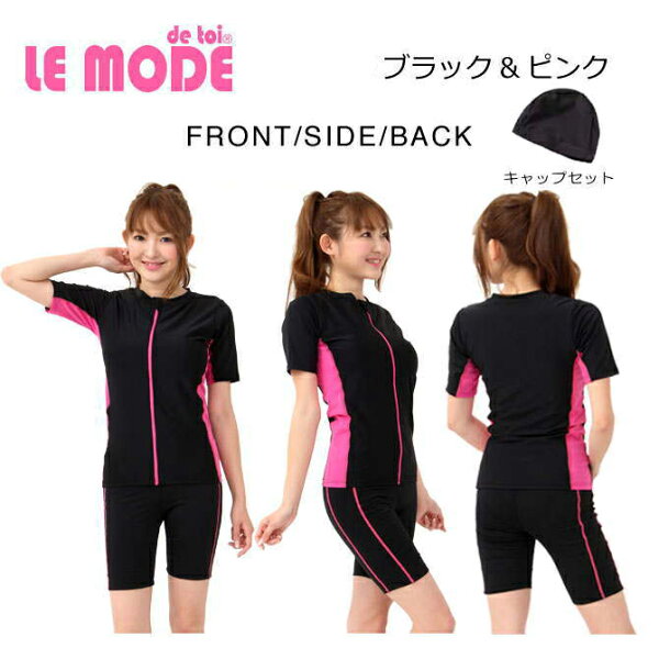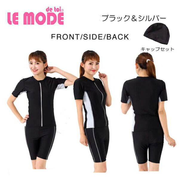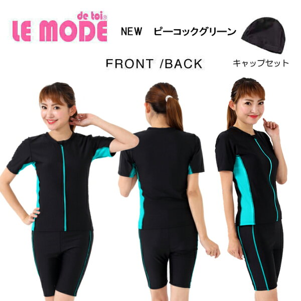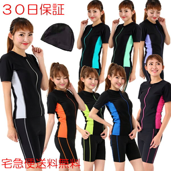 フィットネス水着 レディース セパレート 大きいサイズ フィットネス 水着 半袖 女性 細見え 着痩せ 上下セット キャップセット 前あき UVカット ママ水着 めくれ防止 スイミング かわいい 体型カバー 水泳 ジム 競泳水着 送料無料 7S 9M 11L 13L 15LL 17LL 19LL 135ro