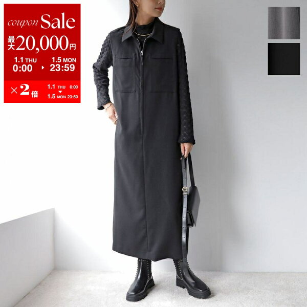 【新春SALE・最大2万円OFFクーポン1/1~5限定】PRIORITY プライオリティ ワンピース P56001BF レディース ノースリーブ 襟付き ジップ ジャンパースカート ロング丈 カラー2色