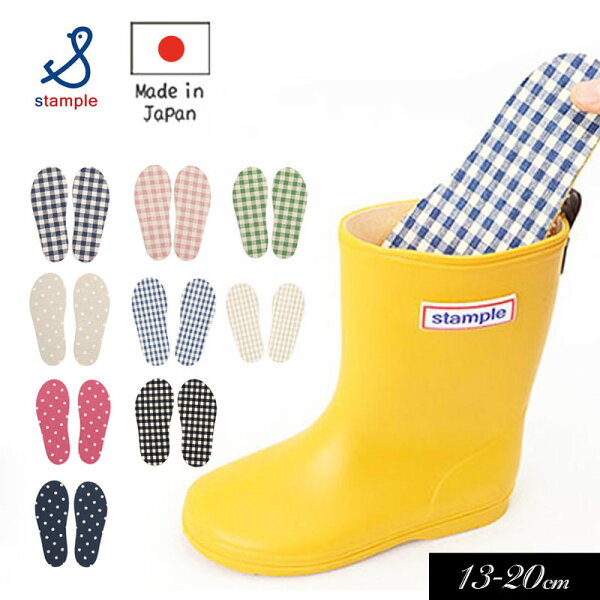2025年新入荷【stample/スタンプル】 インソール 日本製 ≪13cm 14cm 15cm 16cm 17cm 18cm 19cm 20cm≫ チェック柄 ドット柄 綿麻 キッズ 子供 シューズ 中敷き レインシューズ 長靴