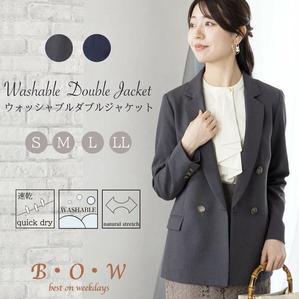 【¥7,590→¥6,490】 通勤服 ジャケット レディース 春秋 ダブルジャケット テーラード ダブル テーラードジャケット フォーマル アウター 通勤 オフィス オフィスカジュアル 洗える ブレザー 洗えるジャケット セレモニー 入学式 卒業式 ネイビー ミセス ママ 春 秋 bow