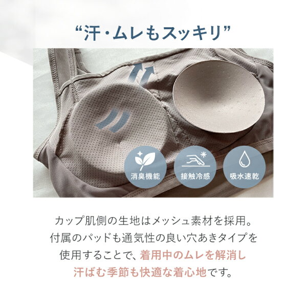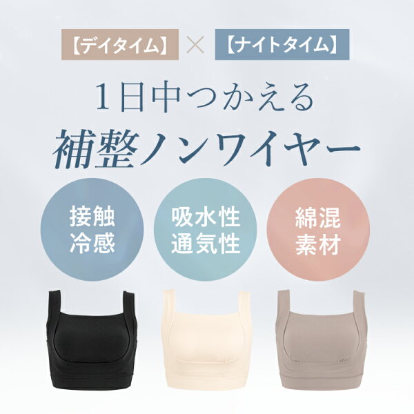 デイリー使いや就寝時のナイトブラはもちろん、ヨガやエクササイズなど軽いスポーツインナーとしても24時間着用でき、マルチにお使いただける補整ノンワイヤーブラレットです。