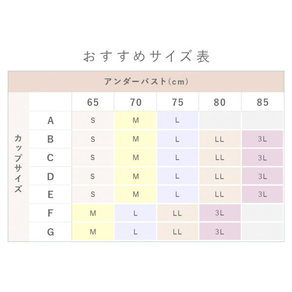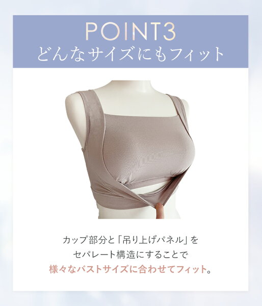 カップ部分と吊り上げパネルを縫い付けていないため、様々なバストサイズの方にフィットしやすくなっています。S~3Lとサイズバリエーションが豊富なので、ご自身に合ったサイズをお選びいただけます。