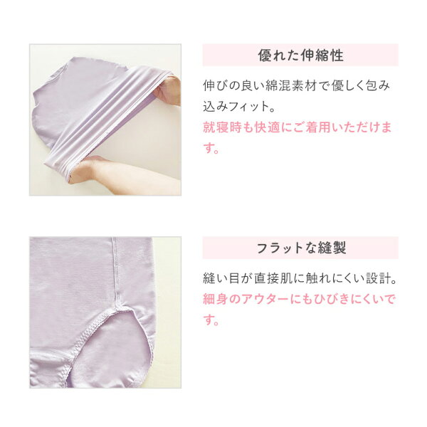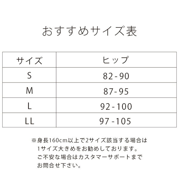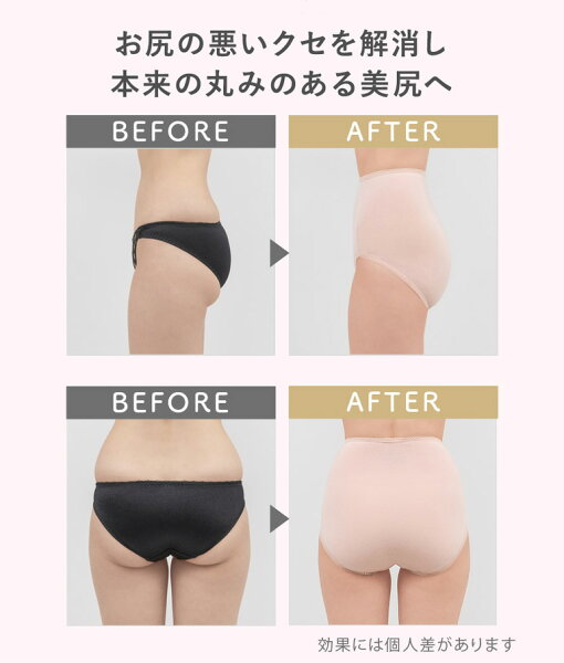 ウエストから太ももの付け根まですっぽり包み込むデザインで、ヒップについた悪いクセを取り、お尻と太ももの境目を作る役割があります。さらにジャストウエストのためウエストラインをつくり、お腹周りに段差ができるのを防ぎます。