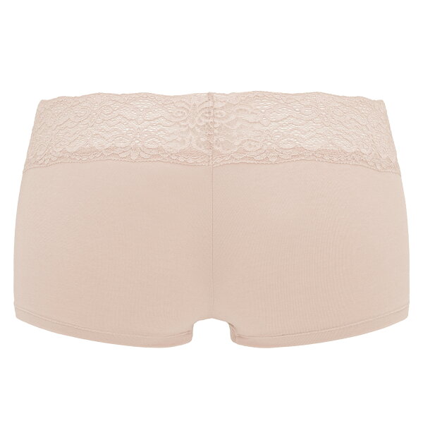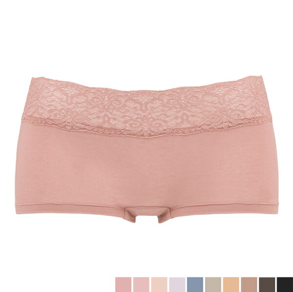 素肌に吸い付くようなフィット感が魅力の、肌に優しいナイロン綿ベア天竺を使用した、おしりが桃!シリーズのボーイレッグショーツです。