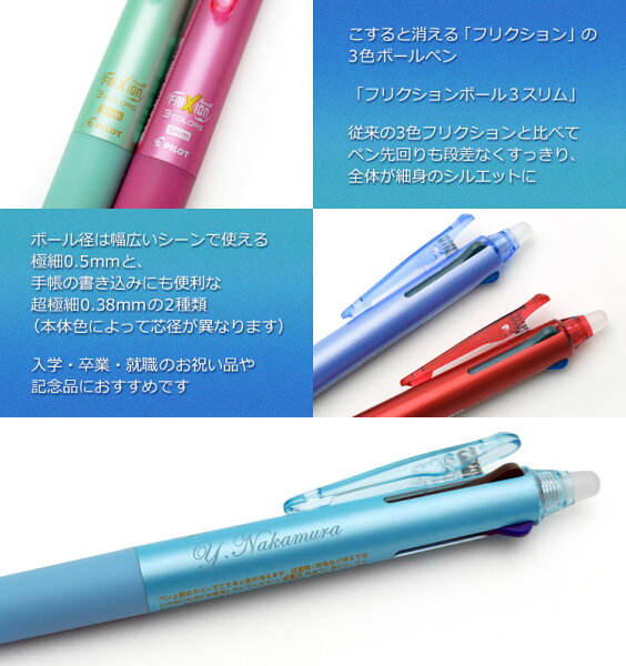 フリクションボール 3 スリム 05・038 名入れ ボールペン 消せるインク 黒赤青3色 ボールペン PILOT - パイロット - LKFBS60EF LKFBS60UF 入学祝 卒業祝 就職祝 誕生日 記念品 卒業記念品 お祝い 1本から 名前入り 卒業式