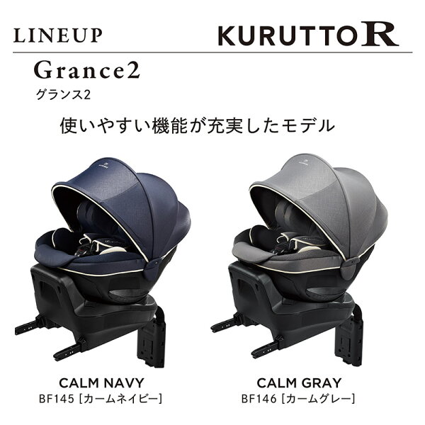 日本製回転式R129チャイルドシート 新生児~4才頃 BF146 エールベベ・クルットR グランス2 カームグレー チャイルドシート ISOFIX 回転式 UN(ECE)R129/03適合品 ISOFIX取付専用 4年間の製品ロング保証付 エールベベ(AILEBEBE) carmate