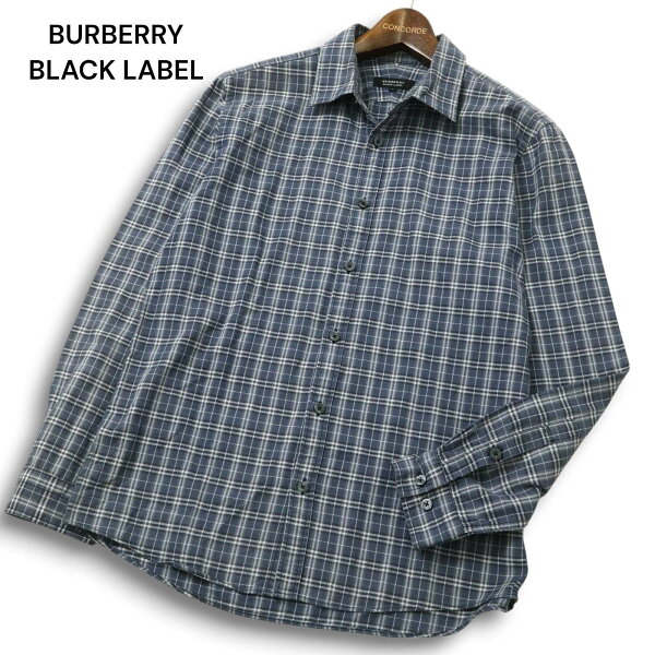 BURBERRY BLACK LABEL バーバリー ブラックレーベル 通年★ 長袖 チェック シャツ Sz.2 メンズ ネイビー