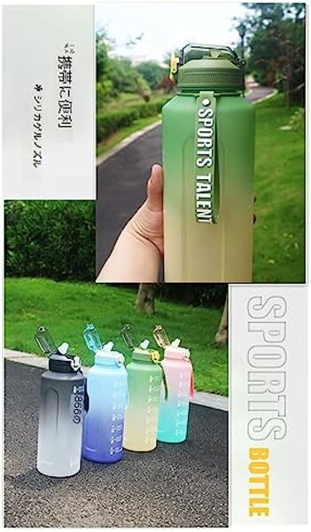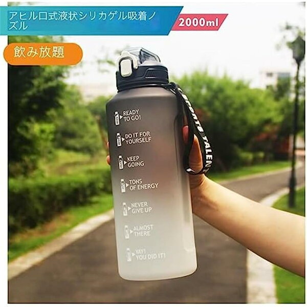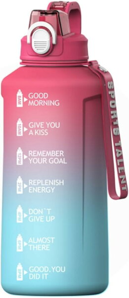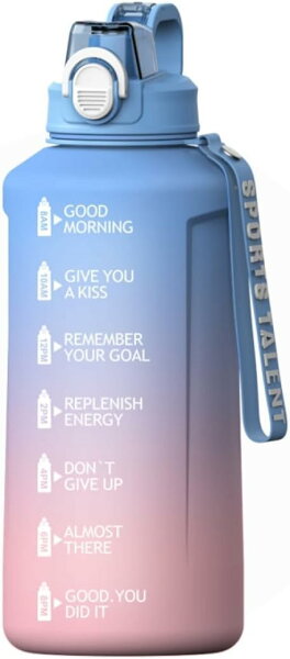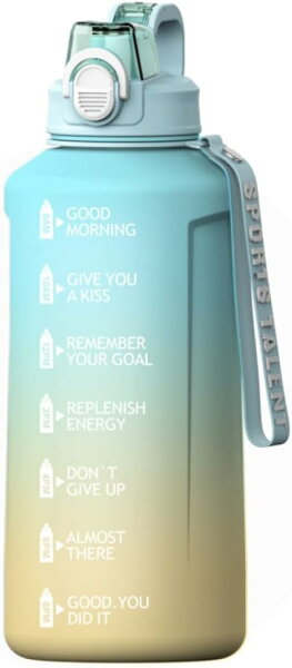 Hummosk 2リットル水筒 保温保冷 BPAフリー プラスチックウォーターボトル グラデーションカラー 女の子 軽い コップ 釣り 登山 自転車 遠足 (ブルー)