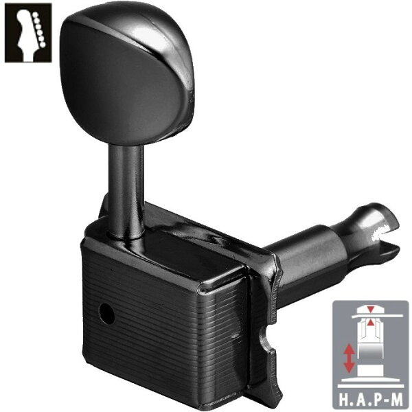 左利き/レフティ用 Gotoh SD91 H.A.P-M Black R6 ゴトー ギターペグ ハイトアジャスタブルポスト+マグナムロック ブラック 6連(ペグボタンオプション対応)