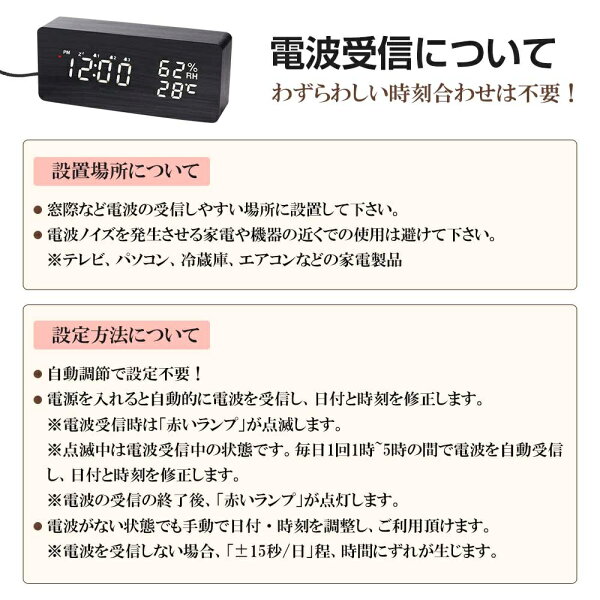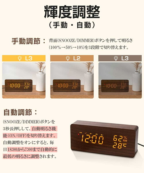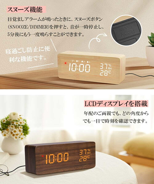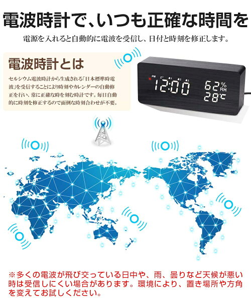 【楽天1位】進化版 電波時計 デジタル 置き時計 湿度計 温度計 目覚まし時計 木目調 おしゃれ LED表示 クロック 置時計 大音量 カレンダー アラーム 木製 ウッド 北欧 アンティーク 卓上 音量 明るさ調節 スヌーズ リビング 日本語説明書 子供 女の子 男の子 贈り物 送料無料