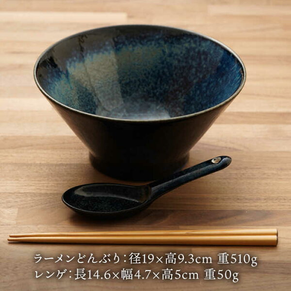 内容量【美濃焼】ラーメンどんぶりとレンゲセット 窯変紺色(各2点合計4点)