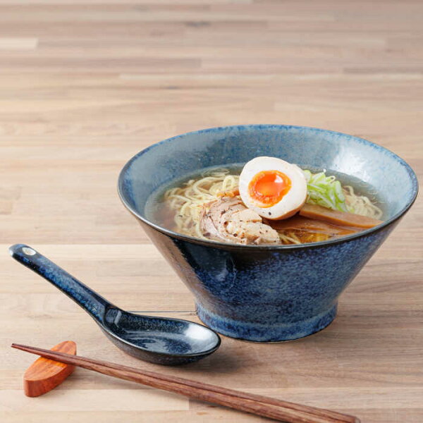 【美濃焼】ラーメンどんぶりとレンゲセット 窯変紺色(各2点合計4点)