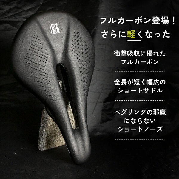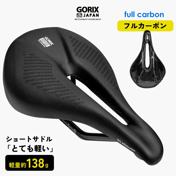 【送料無料】ゴリックス サドル 自転車 カーボンサドル 炭素繊維 超軽量 (GO.643double(フルカーボン)) ショートノーズ 幅広タイプ 穴あき ロードバイク 軽い 衝撃吸収 自転車サドル交換 おしゃれ 防水PUレザー ブラック クロスバイク mtb GORIX