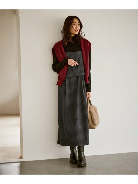 ・タートルネックニットの上やブラウスの上にオンして休日スタイルに。