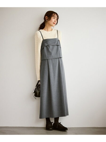 ・胸元のドレープが新鮮なキャミソールワンピース。