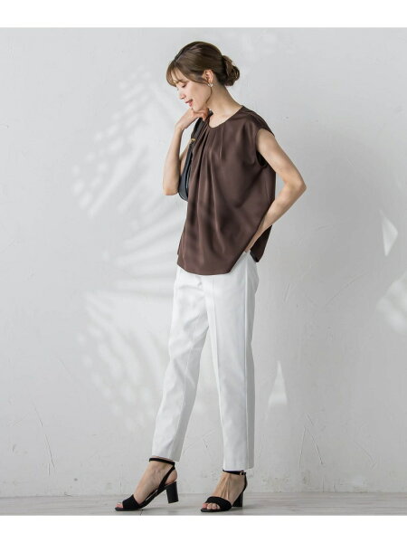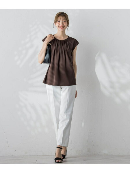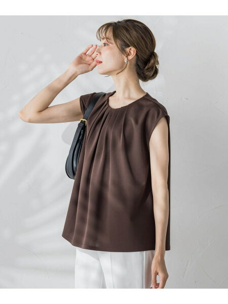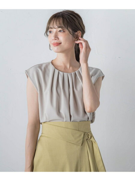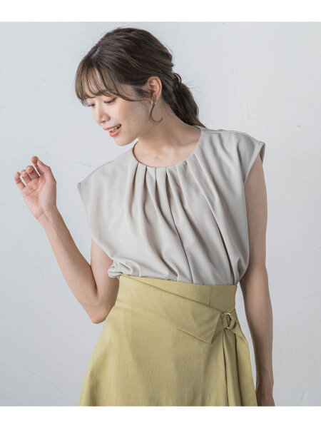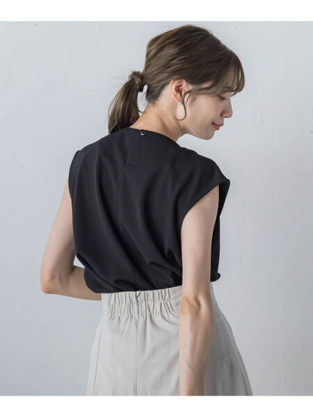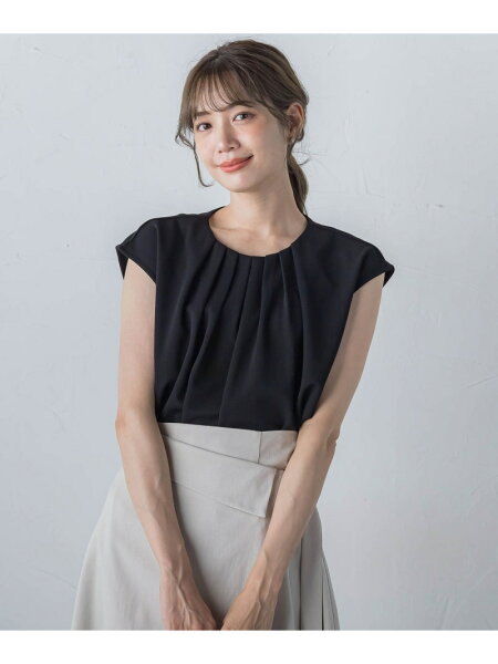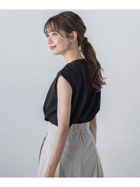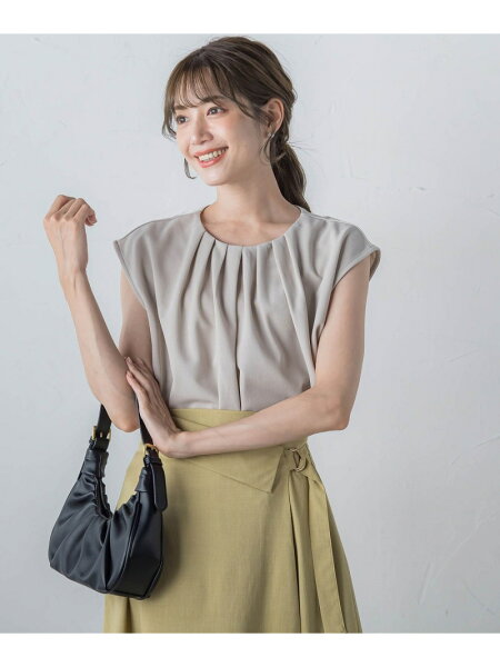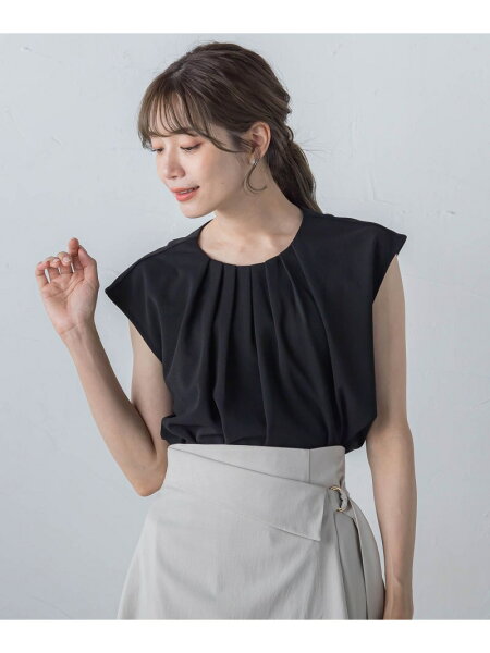 胸元のタックが立体的で上品に見せてくれるデザイントップス。