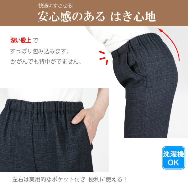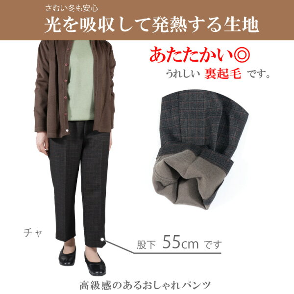 シニア 婦人服 おばあちゃん プレゼント シニアファッション 裏起毛 パンツ レディース 80代 70代 日本製 総ゴム 送料無料 高齢者 服 格子 冬 暖 S M L LL 3L 4L 5L あったかい 股下55cm レディースパンツ あったかパンツ シニアパンツ 【9597】