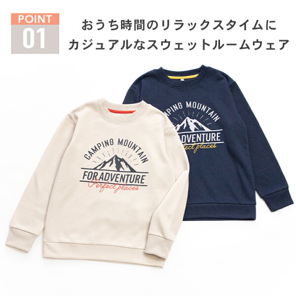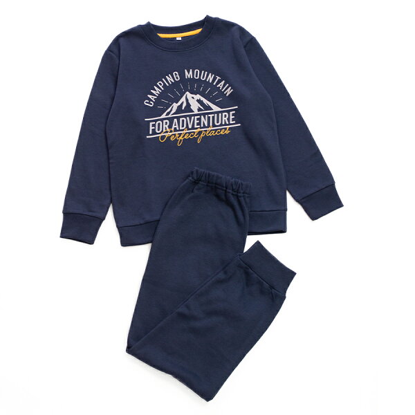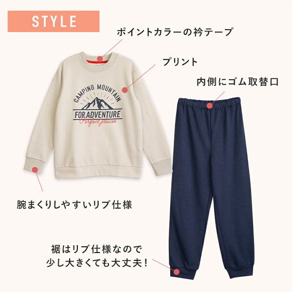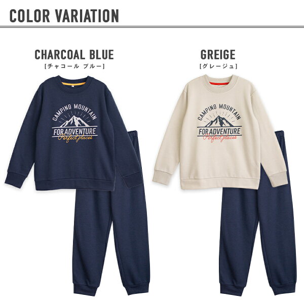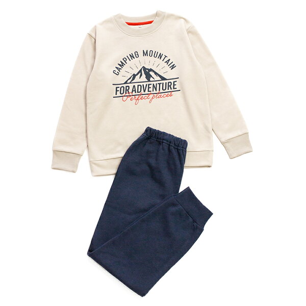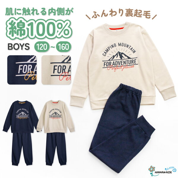パジャマ ボーイズ 内側が綿100% 長袖 秋 冬 裏起毛 スウェットルームウェア 親子おそろい カジュアル アウトドアプリント セットアップ 裾リブ 袖リブ ルームウェア チャコールブルー グレージュ 130 140 150 160 修学旅行 林間学校 プレゼント ギフト