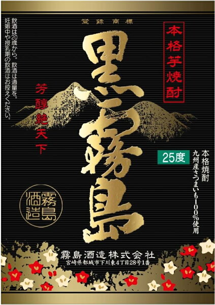 12/19 20:00~12/25までP3倍 【最強配送】【抽選で1等77,777ポイント当たる!】【送料無料】 霧島酒造 本格芋焼酎 黒霧島 25度 パック 1800ml 1.8L×1ケース/6本 【一部地域送料無料対象外】
