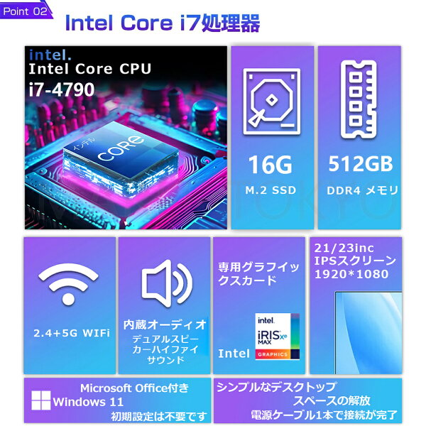 【1年保証★office付き★メモリー:16GB SSD:512GB】 デスクトップパソコン 一体型パソコン 一体型pc 新品 Windows 11搭載 デスクトップPC 22型 23型 23.8inc 初心者向け CPU i7 USB 2.0/ USB 3.0/5G WIFI搭載 CD/DVD 子供 誕生日プレゼント