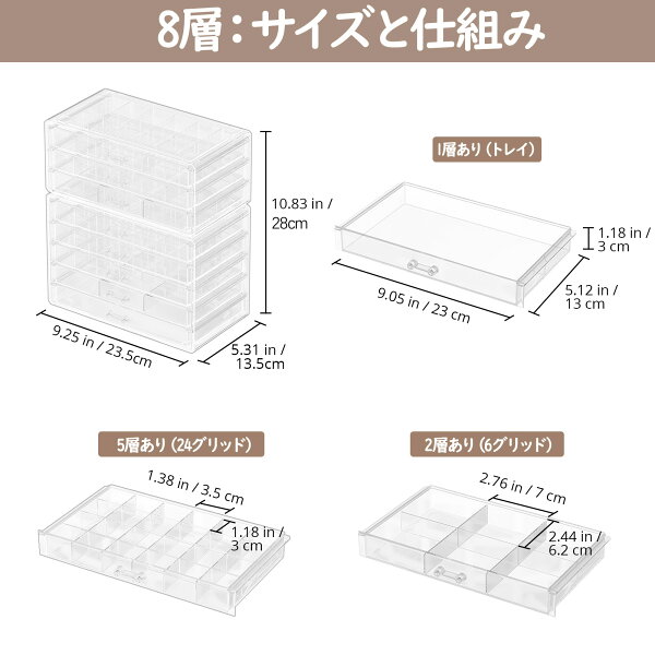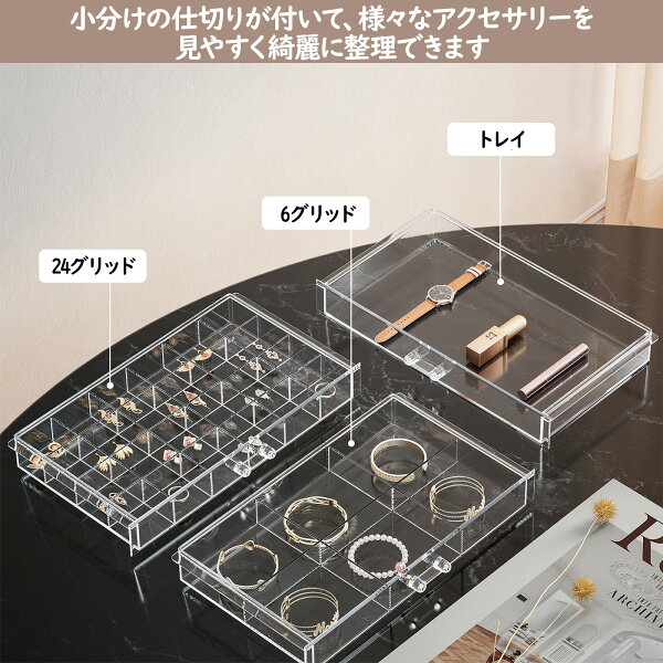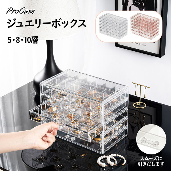 ProCase ジュエリーボックス 5・8・10層 透明アクリル 指輪・リング・ピアスの収納 ハンドメイドパーツ収納 引き出し 女性 アクセサリーケース オーガナイザー プレゼント