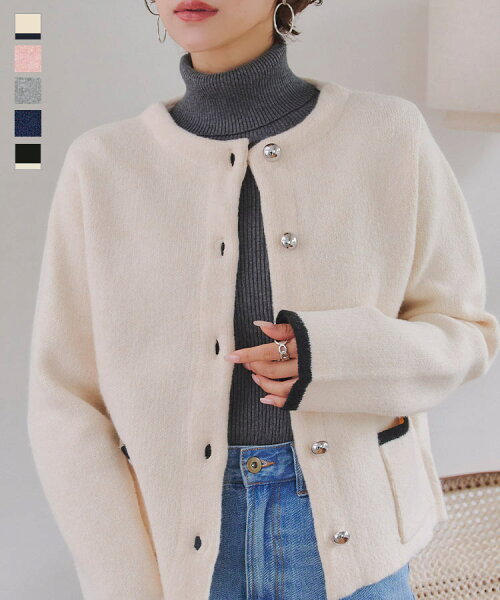 ダブルボタンもっちもちニットジャケット [C7195] レディース ニット セーター ジャケット カーディガン 羽織り ダブルジャケット ニットコート コーディガン コート オフィスカジュアル 20代 30代 40代 50代 バイカラー【送料無料】