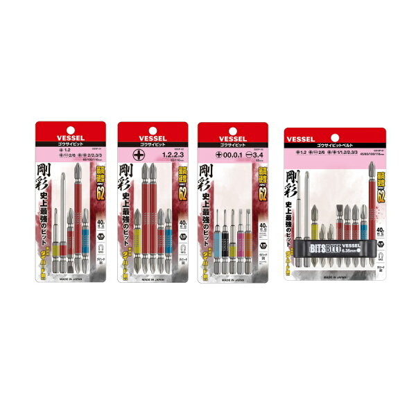 【まとめ買い割有】 VESSEL 剛彩ビット アソート 5本組 / 10本組 GS5P-01 GS5P01 / GS5P-02 GS5P02 / GS5P-03 GS5P03 / GS10P-01 GS10P01 ビットベルト ベッセル プラス マイナス 40V対応