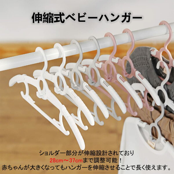 【送料無料】BOOFLYII ベビーハンガー 10本セット 子供用ハンガー 滑らない キッズハンガー 跡がつかない 伸縮式 省スペース 厚くする 耐久性あり おしゃれ 多目的収納式(ピンク)
