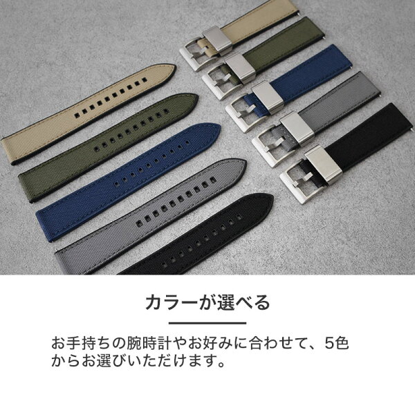 裏面:FKMラバーカン幅20mm 22mmベルトカラーブラック グリーン グレー ベージュ ネイビー 黒 緑 灰 紺 青バックル材質ステンレススティール遊革材質ステンレススティール付属品バネ棒外し工具
