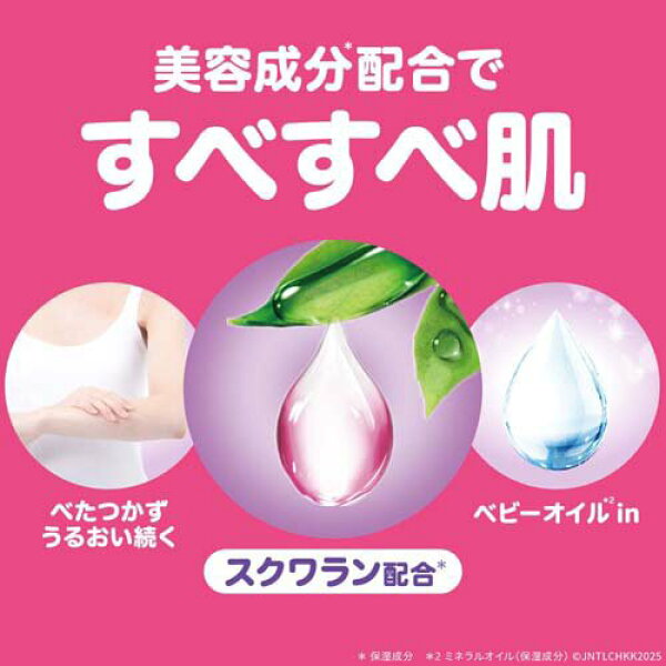 ●肌のうるおいをやさしく守るベビーオイル*1、保湿効果の高いカミツレ花エキス*2を配合。