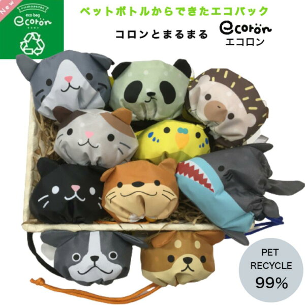 【マラソン期間P5倍+クーポン発行中】アニマル デイズ エコバッグ エコロン ecoron 折りたたみ たたまないエコ バッグ コンパクト お買物 トート 繰返し使える 大容量 軽量 ネコ イヌ カワウソ パンダ サメ インコ ハリネズミ