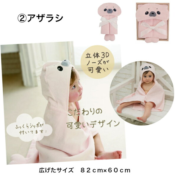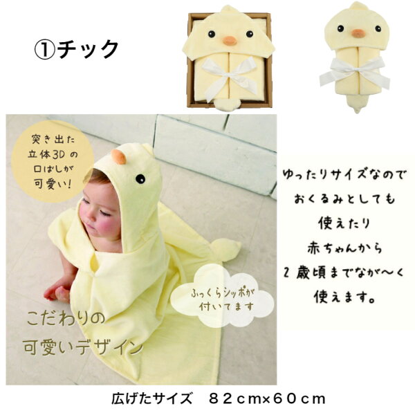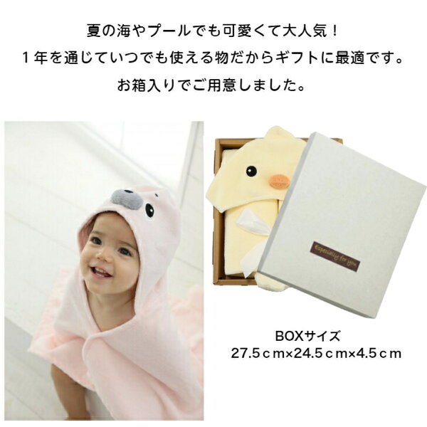 【マラソン期間P5倍+クーポン発行中】ギフトBOX入り 綿100% ベビー アニマル バスラップ お風呂上り 湯上りタオル 出産祝い ギフト プレゼント かわいい フード付きバスタオル バスローブ ご出産 お誕生日 お祝い プール 水遊び