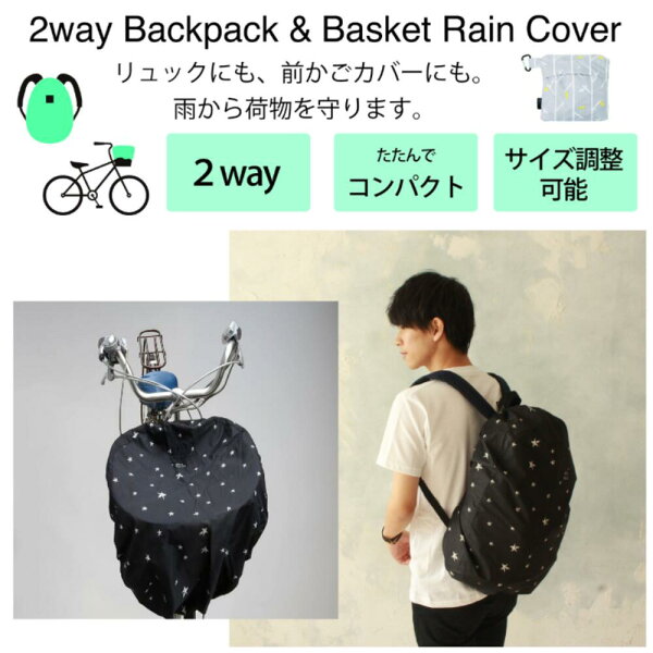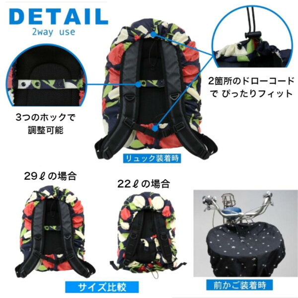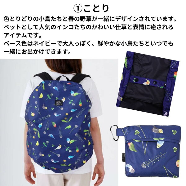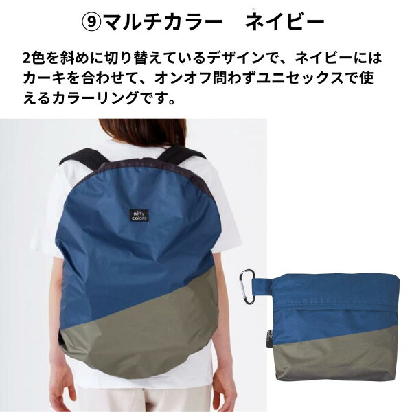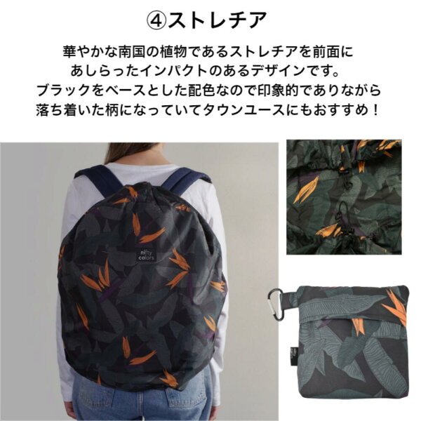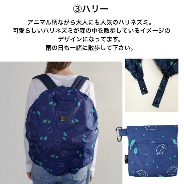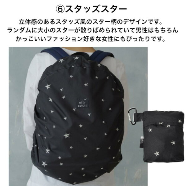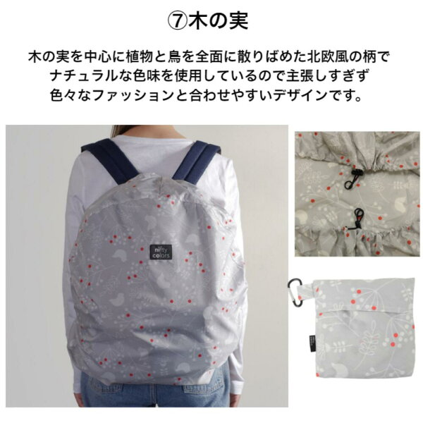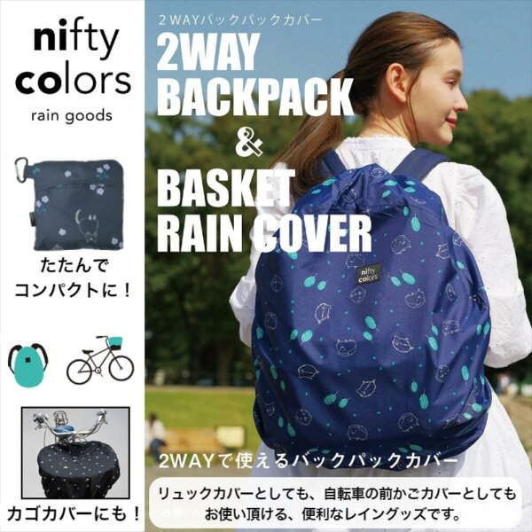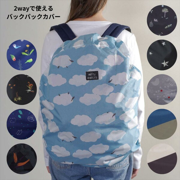 コンパクトにたためる 2wayバックパックカバー 8種 nifty colors レイングッズ リュックカバー 自転車カゴ カバー カラビナ付き 20L~30L対応 はっ水カバー 雨よけ 便利 おしゃれ