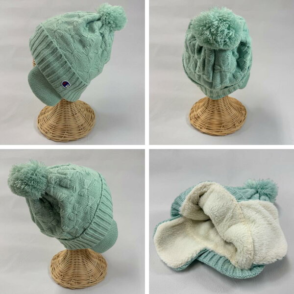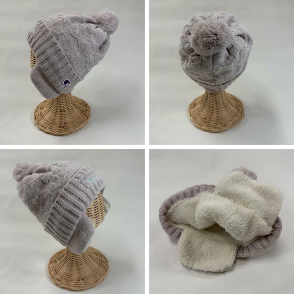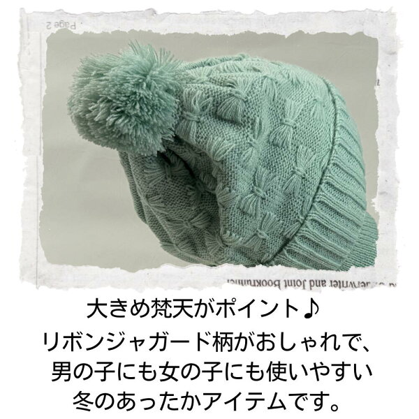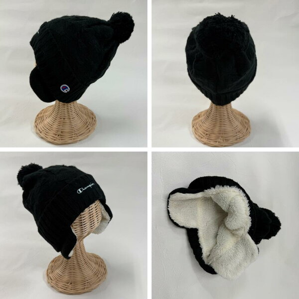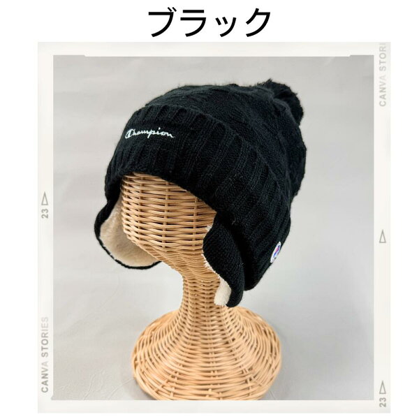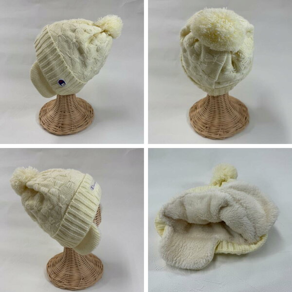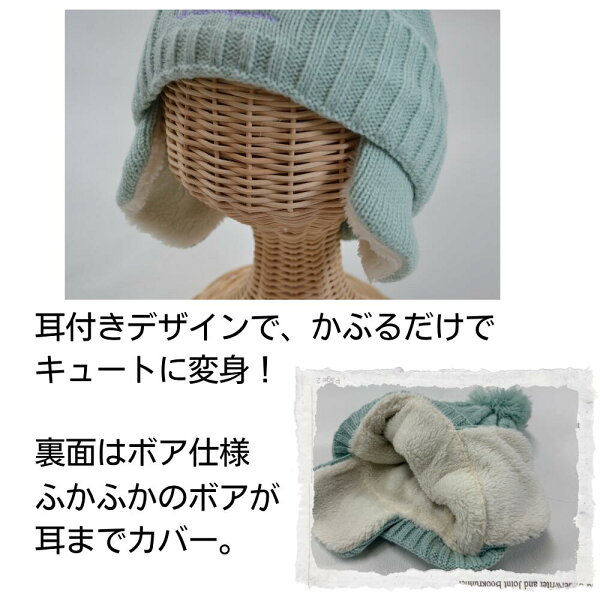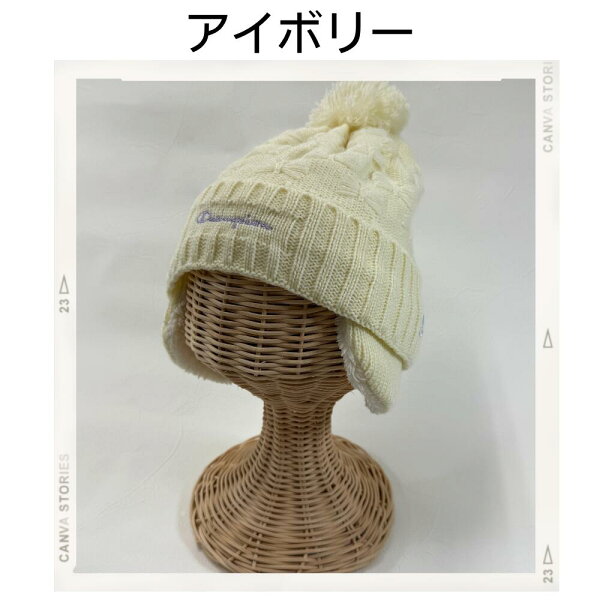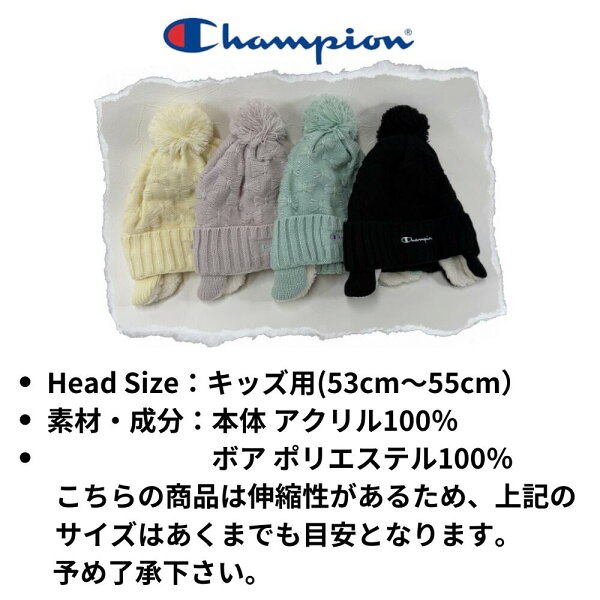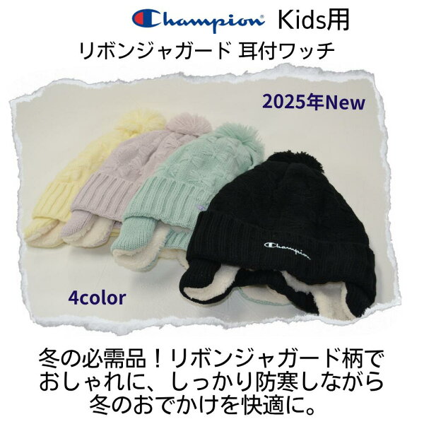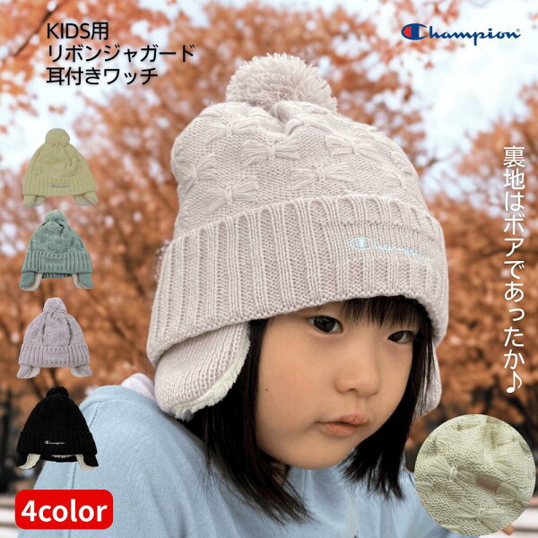 キッズ チャンピオン リボンジャガード 耳付き ワッチ ニット キャップ 裏ボア 冬 男の子 女の子 ニット帽 幼児 子供 防寒 通園 通学 耳あて ボア 帽子 もこもこ イヤーマフ あったか おしゃれ