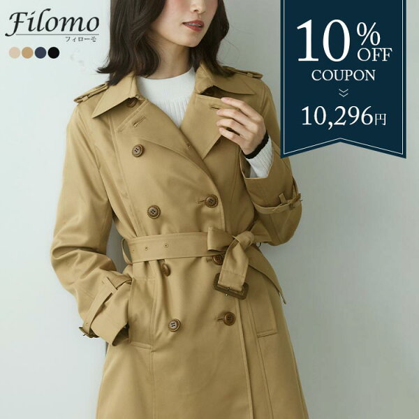商品名:トレンチコート レディース 春 秋 冬 コート アウター 弱はっ水 Filomo ベージュ キャメル ネイビー ブラック 7号/9号/11号/13号 薄手 トレンチコート 膝丈 ミドル丈 ライトアウター スプリングコート 通勤 大きいサイズ ギフト プレゼント 5F (08000041r)