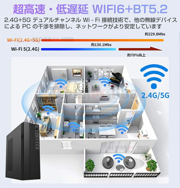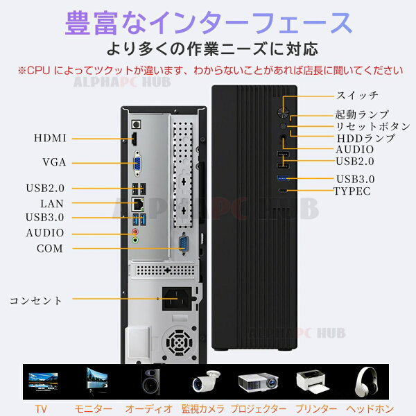 デスクトップパソコン インテル Core i5、更に、より優れたプロセス技術を採用しており、より効率的な動作を実現します。これにより、高い性能を提供しながらも、低い消費電力で動作することが可能となります。256/512/1024GB高速SSDハードディスク搭載し、高速起動します。前世代のプロセッサーより効率が抜群に上がります。 AI作成、仕事や学業、動画鑑賞、プライベートでの作業など、さまざまな用途に活用できます