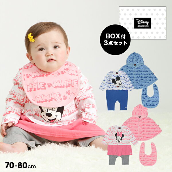 【S】 ギフトBOX付き ディズニー 3点 ギフトセット 4330B【*DY】 綿100% ロンパース ケープ ポンチョ スタイ ベビードール BABYDOLL 子供服 ベビー DISNEY ベビー服 出産祝い プレゼント ミッキー ミニー