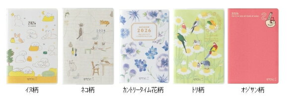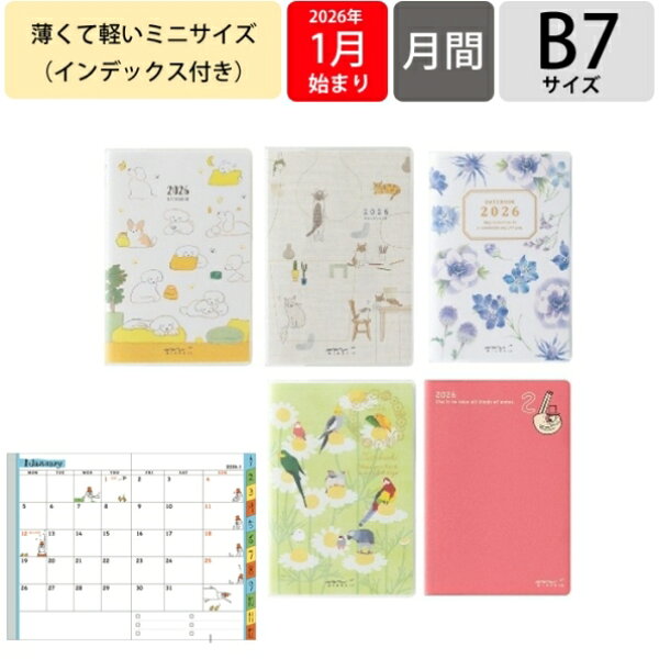 DESINPHIL MIDORI デザインフィル ミドリ 2026 1月始まり 手帳 月間式(ブロック) B7 ポケットダイアリー ミニ イヌ ネコ 花 トリ オジサン デ゙ザイン 大人かわいい 小さい 薄い ダイアリー スケジュール帳 手帳のタイムキーパー