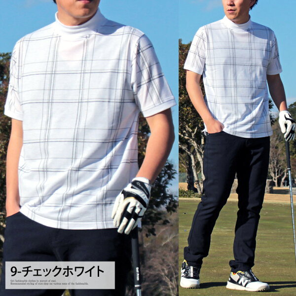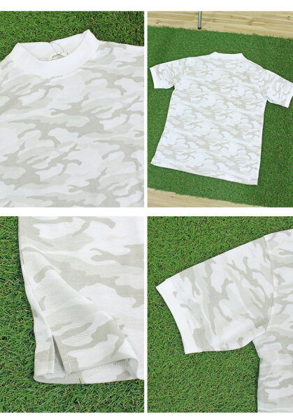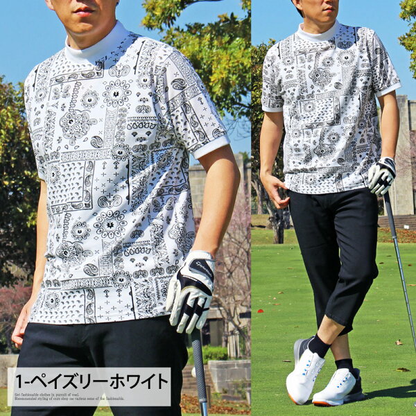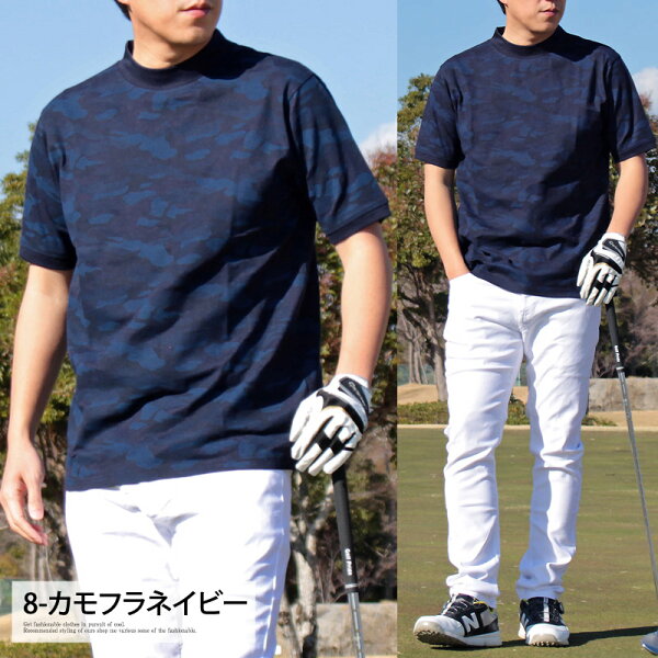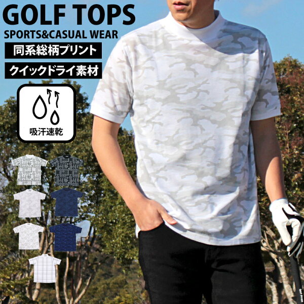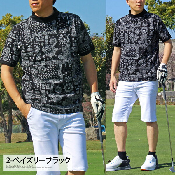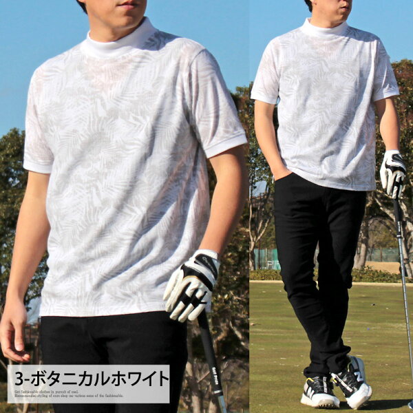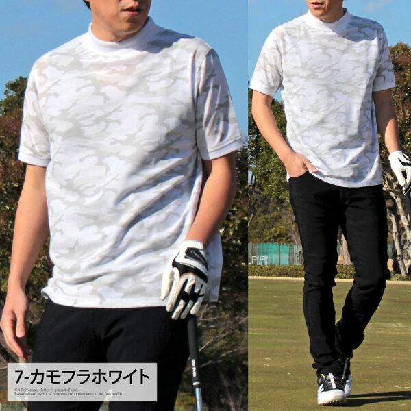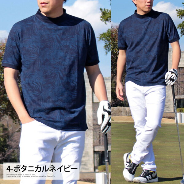 送料無料 ゴルフウェア ハイネックシャツ メンズ モックネック ゴルフ 速乾ドライ 鹿の子 ストレッチ 半袖 カモフラ 迷彩 ロゴ ボタニカル ペイズリー トップス 大きいサイズ 春夏 トップイズム ゆうパケ