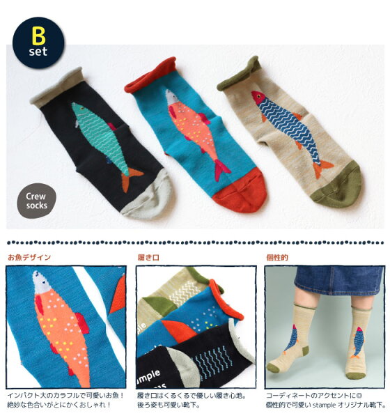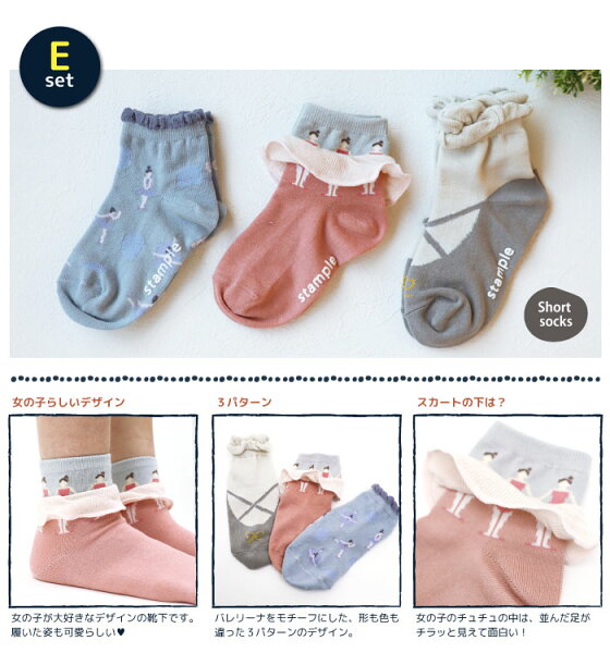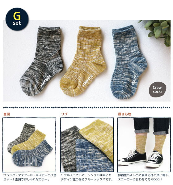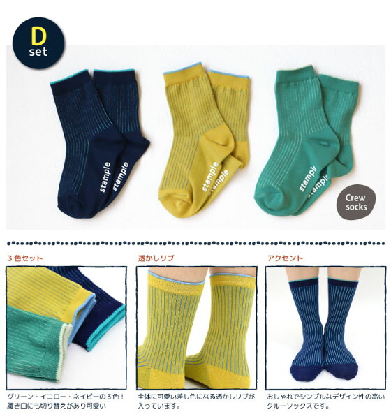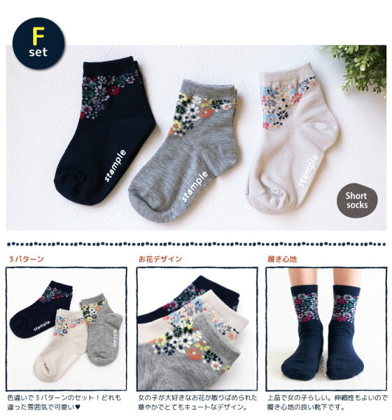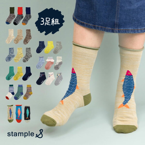 【2026 福袋クーポン】【秋冬靴下】靴下 キッズ ソックス スタンプル stample ショート&クルーソックス 3足組 親子 おそろい 靴下 クルー ボーダー さかな ストライプ 花柄 履きやすい おしゃれ 滑り止め すべり止め 暖かい あったか こども 女の子 男の子 保育園 かわいい