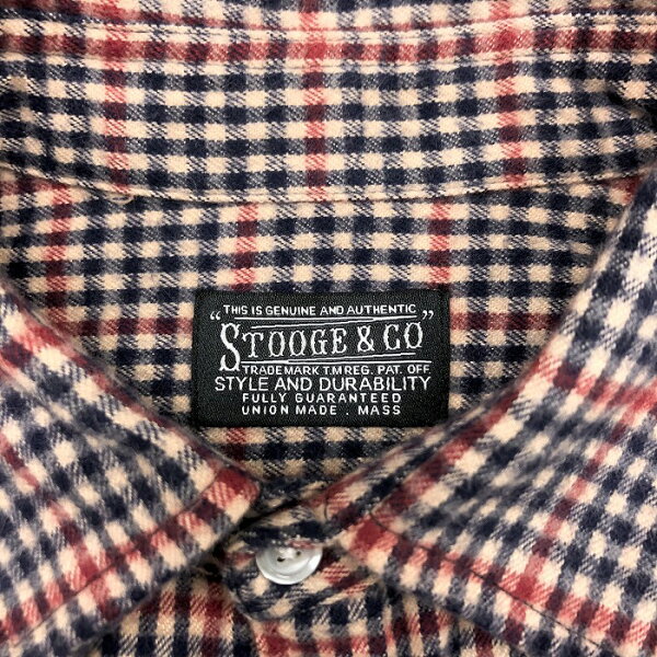 【当店初売りSALE!! \★半額★/対象商品|1月1日(木)00時00分~1月14日(水)23時59分まで】【中古】STOOGE ストゥージ S メンズ 男性 ネルシャツ ソフトネル チェック 両面刺繍 長袖 両胸ポケット 綿100% レッド×ネイビー×オフホワイト