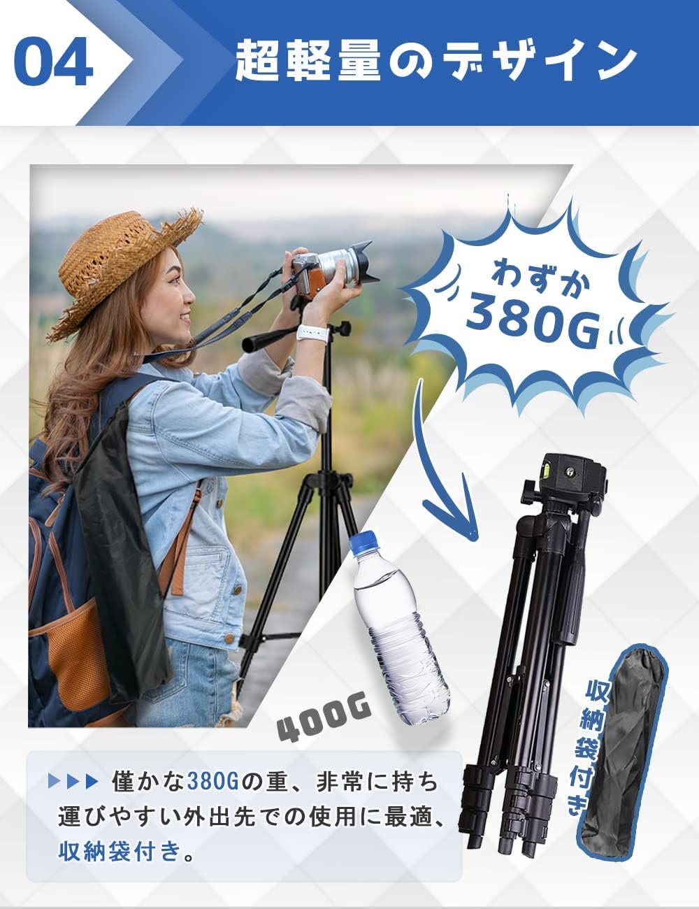 | 三脚ヘッドタイプ: | パンハンドル付き雲台 |